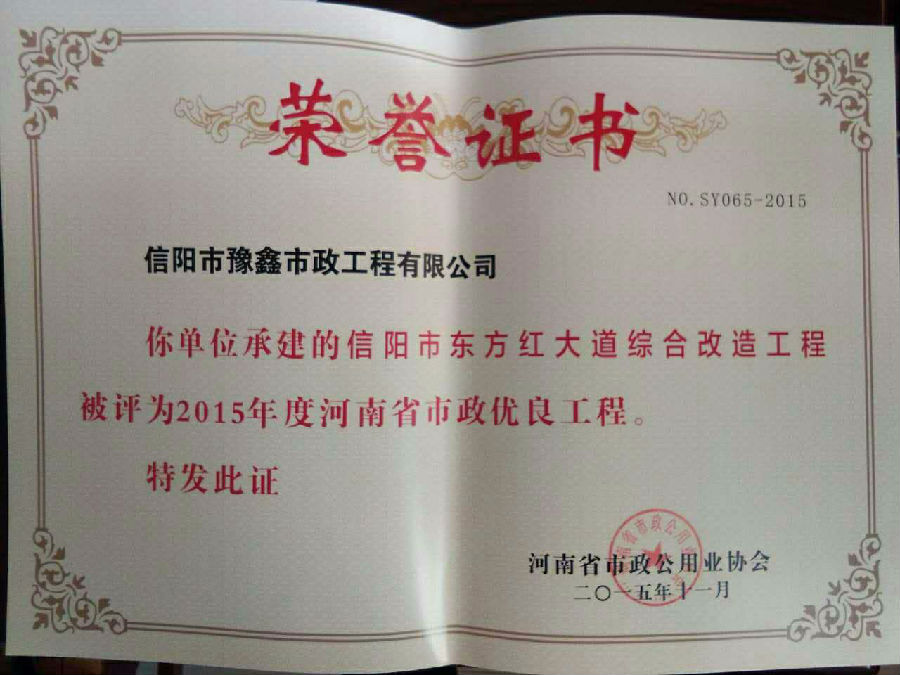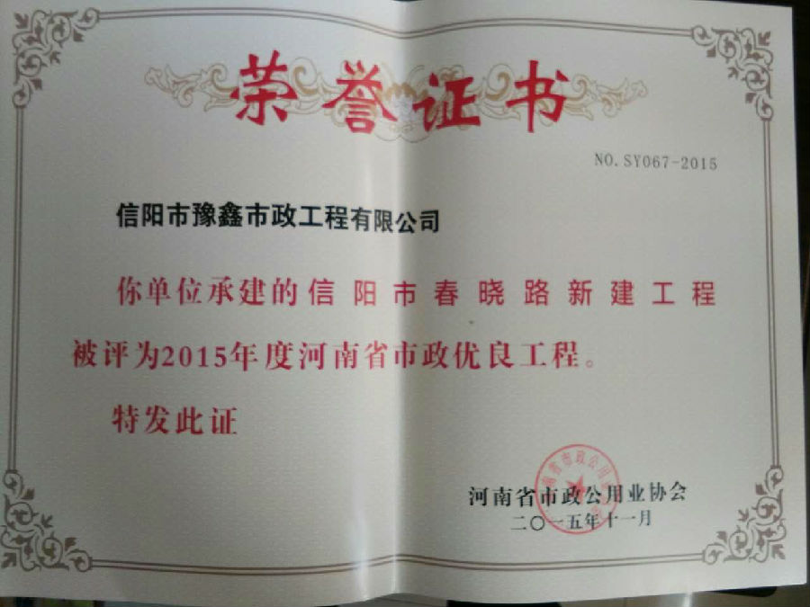 好風憑借力,送我上青云。近年來,公司積極參與城市市政基礎(chǔ)設施建設施工,積極參與市場競爭,先后承擔施工了市政府重點工程南京路道路改造工程、春曉路道路改造工程,東方紅大道道路改造工程、龍江東路新建工程等重點民生工程,其中南京路道路改造工程被省建設廳評為“中州杯”, 春曉路和東方紅大道道路改造工程被省建設廳評為“省優(yōu)工程”,成為城區(qū)一道道亮麗的風景線。參與施工了市典范小區(qū)“臺北城上城”、“恒大名都”以及師范學院、職業(yè)技術(shù)學院、交警支隊和軍區(qū)道路工程,參與施工了雞公山管理區(qū)、南灣管理區(qū)、明港鎮(zhèn)和羅山縣等部分道路小區(qū)工程施工,累計大小各類施工工程三百余項,企業(yè)影響力不斷擴大、輻射力不斷增強,市場份額不斷提高,企業(yè)信譽不斷彰顯,為信陽城市建設做出了積極貢獻,為企業(yè)的可持續(xù)發(fā)展插上了騰飛的翅膀。